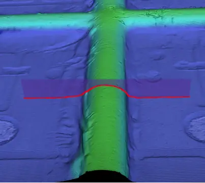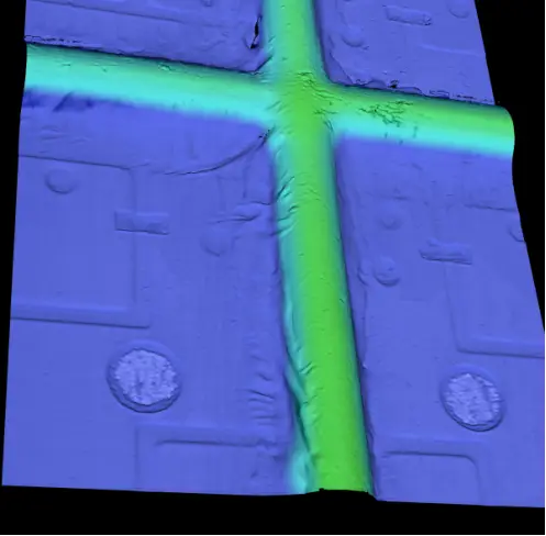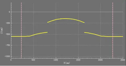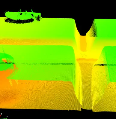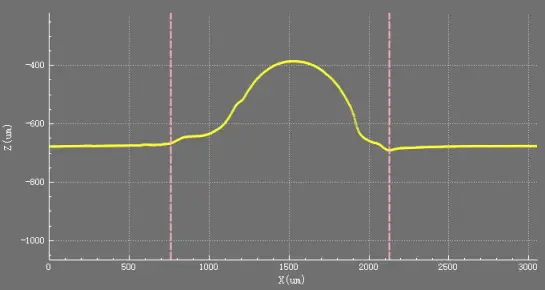根據客戶提供的測試需求,利用線光譜共焦傳感器對樣品點膠位置進行掃描,通過2D圖像以及3D點云圖進行樣品特定位置高度信息的測量。